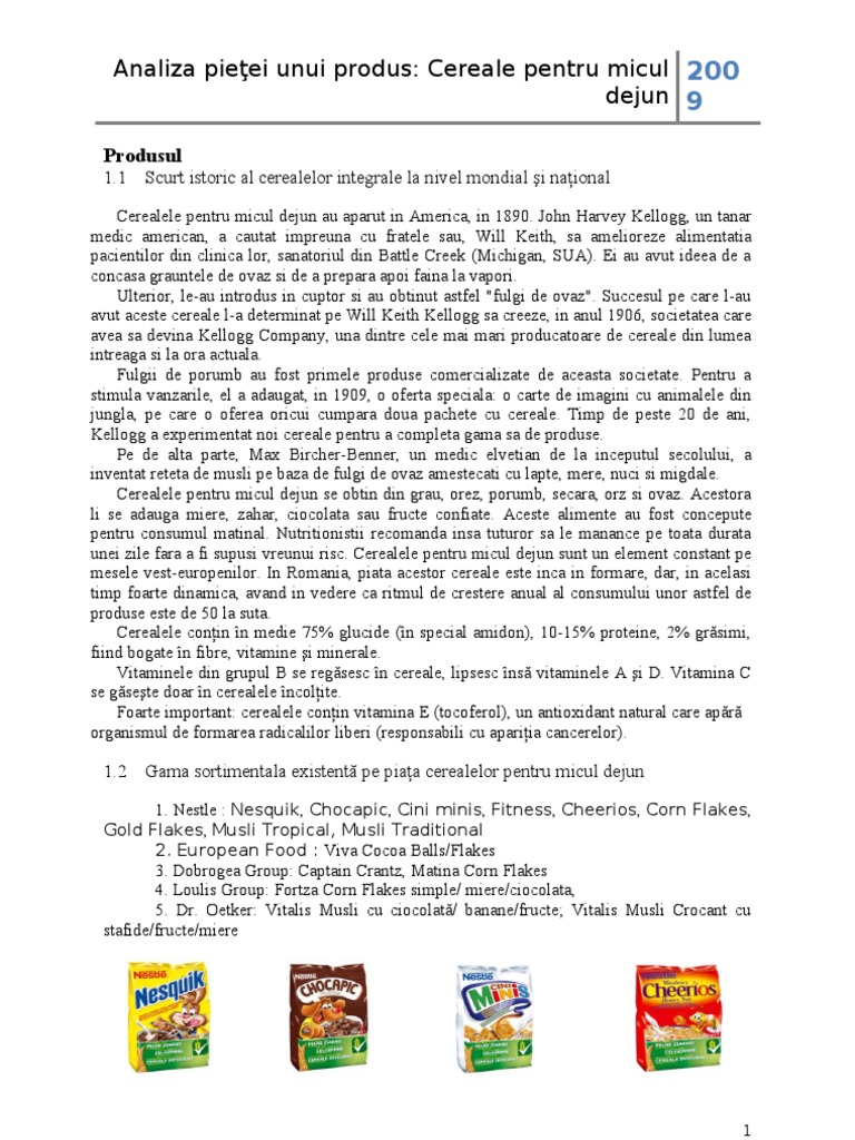 Referat Analiza Pietei Unui Produs Cerealele Pentru Micul Dejun 421269 Graduo