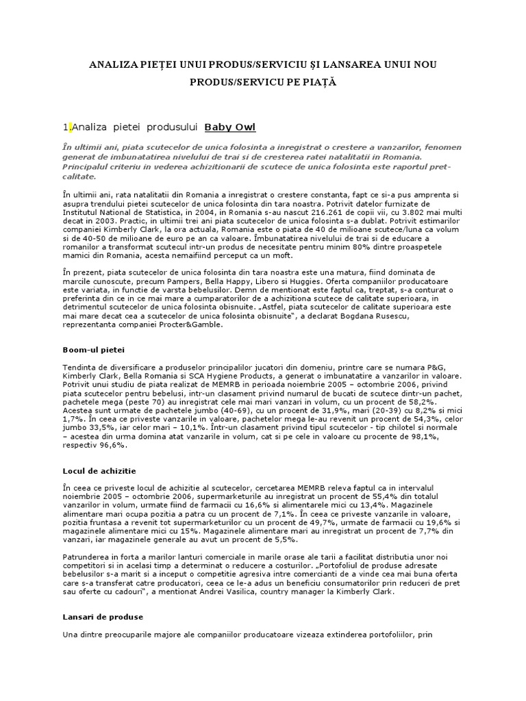 Pentru Proiect La Marketing Analiza Pietei Unui Produs Doc Document