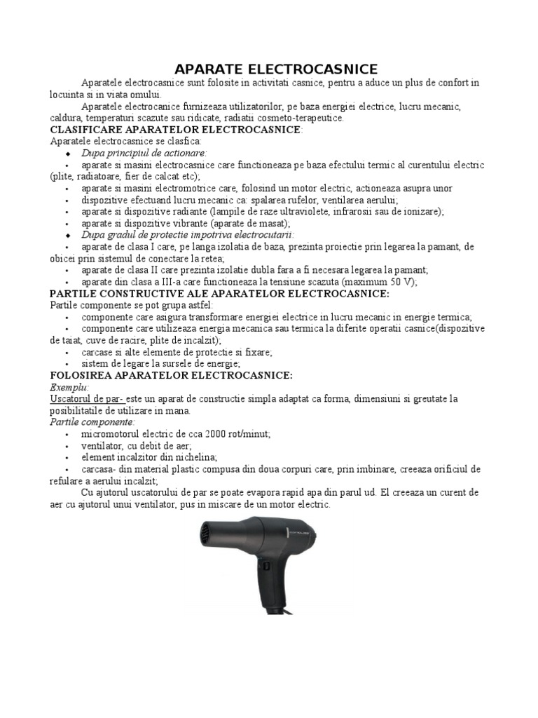 Aparate Electrocasnice Referat Fizica