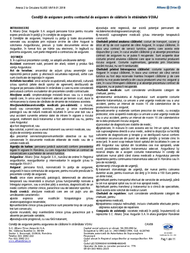 Asigurare Casco Asigurare Calatorie Conditii De Asigurare Generale Si Speciale Allianz Direct
