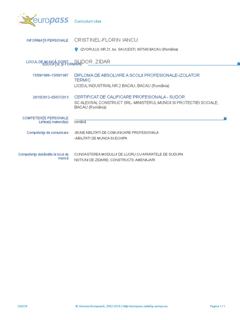 Cv Europass Locuri De Munca