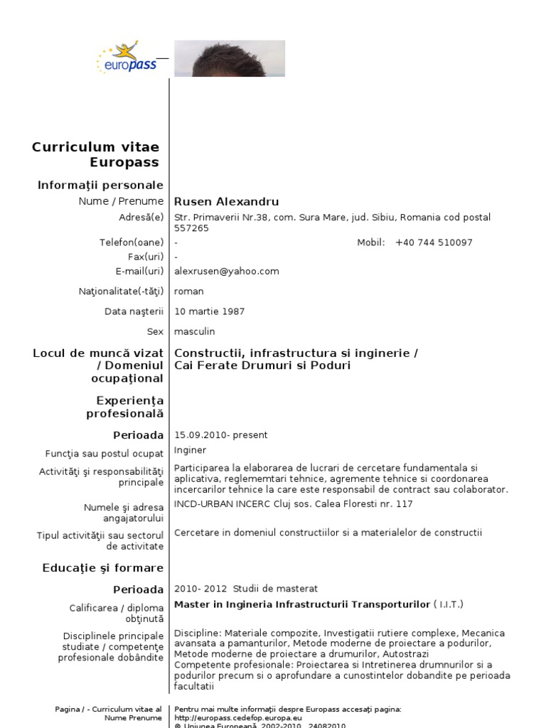 Pdf Instrucţiuni Pentru Completarea Cv Ului Europass Bulmaga Andreea Academia Edu