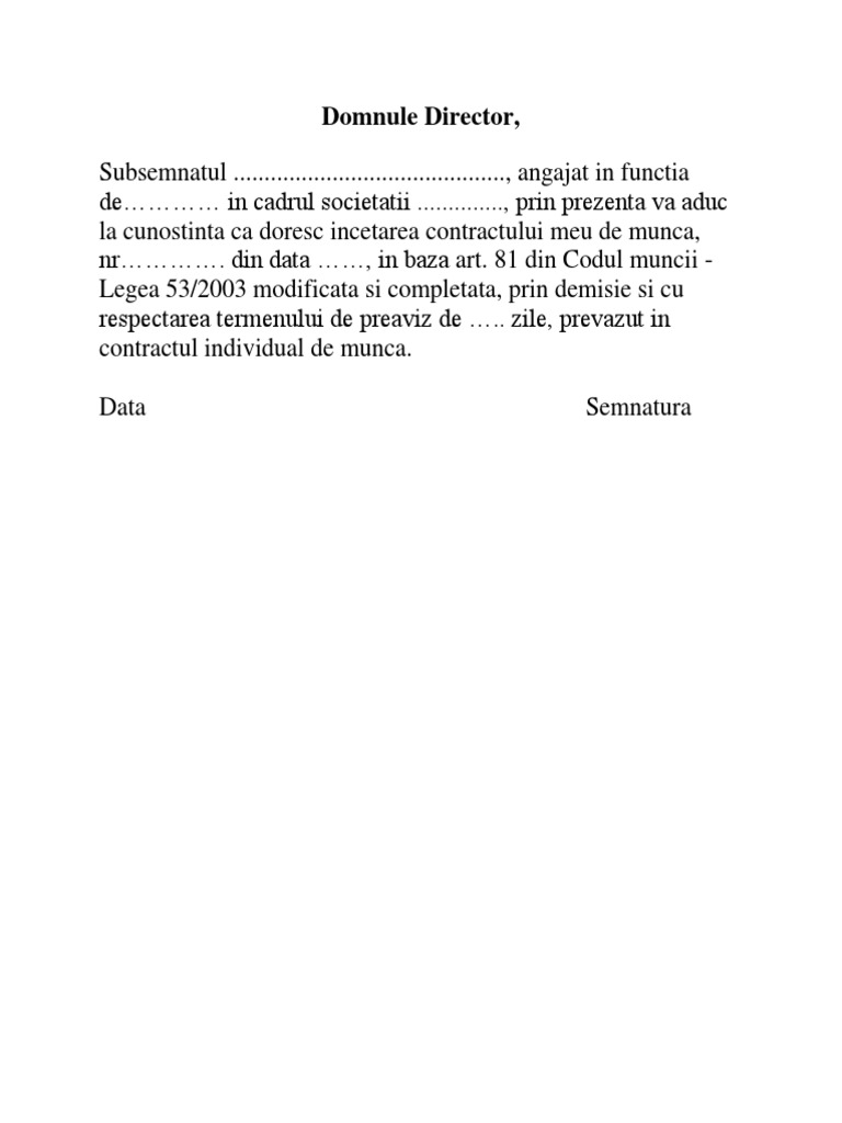 Demisia Fara Preaviz Conform Art 81 Codului Muncii Model Demisie Fara Preaviz 2020