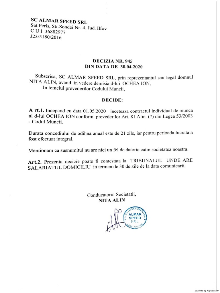 Model Notificare Demisie Pdf