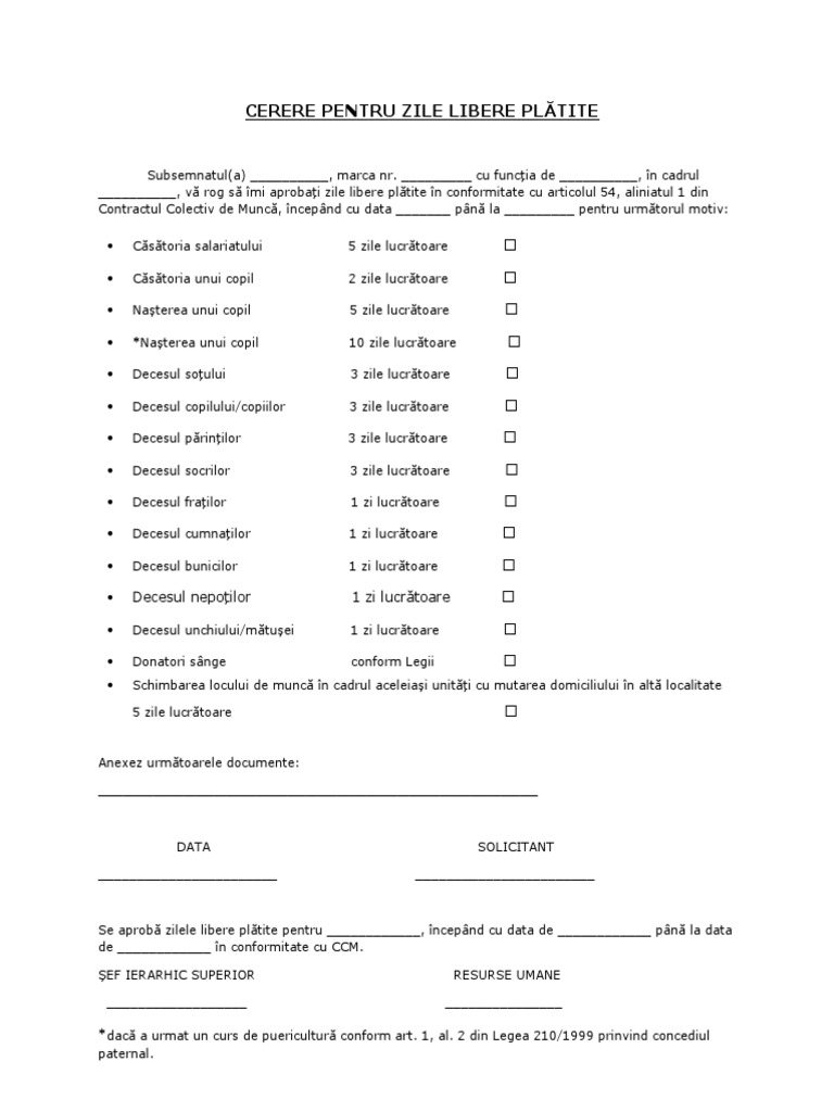 Model Cerere Zile Libere Plătite Pentru Evenimente Deosebite In Familie